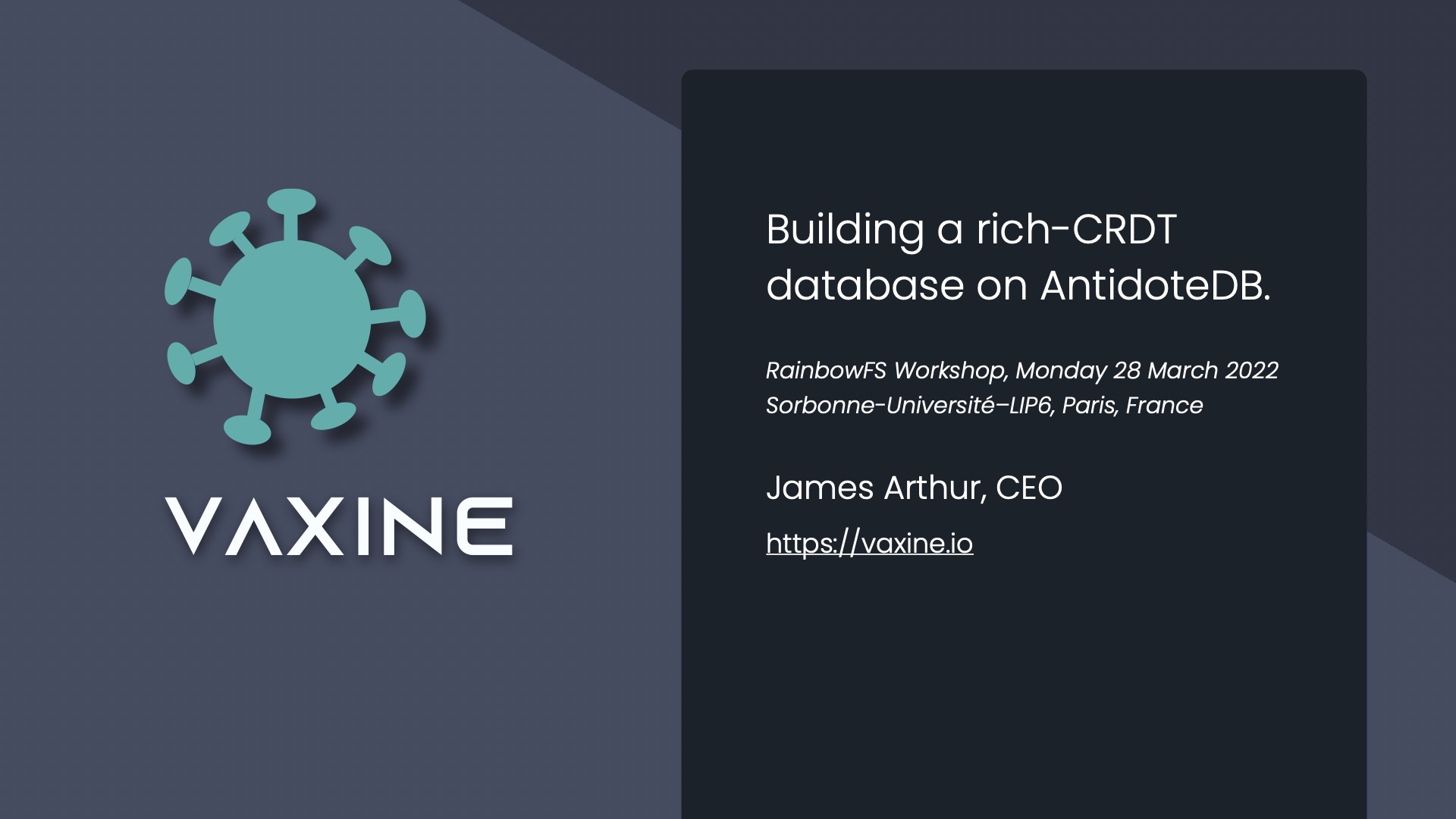 See the following introductory presentation about Vaxine (edit: last updated on 28th March 2022 for the RainbowFS workshop):
